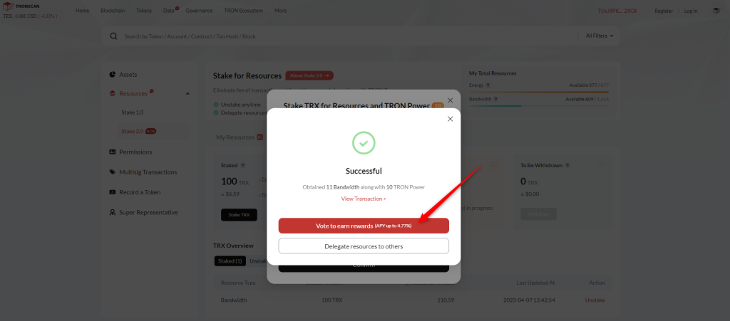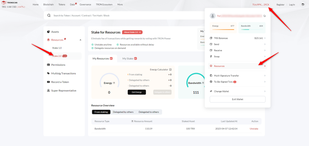 Cách unstake Tron (TRX) bằng TronScan