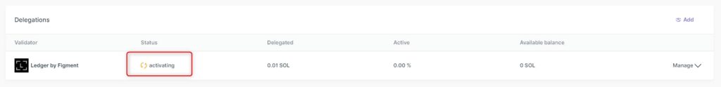 - Sẽ mất tối đa 3 ngày để số dư SOL đã ủy quyền (delegated/staked) trở nên hoạt động (active) và bắt đầu tạo phần thưởng (earning rewards).