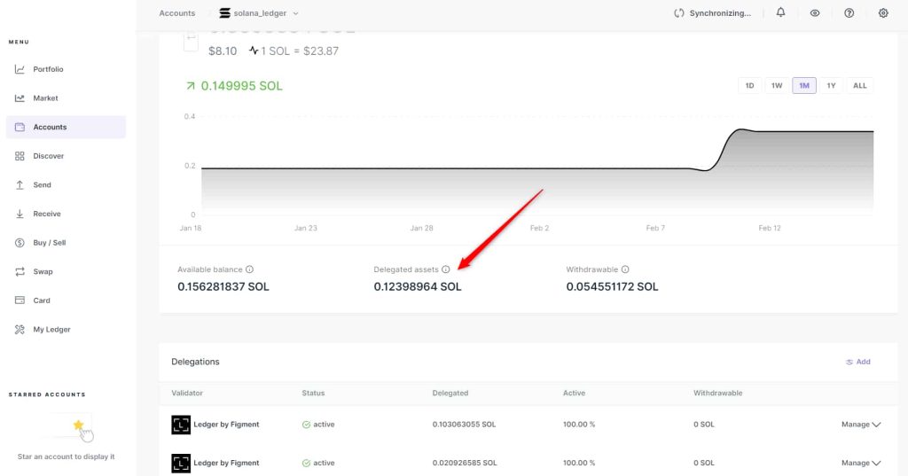 Theo dõi phần thưởng staking SOL trong Ledger Wallet