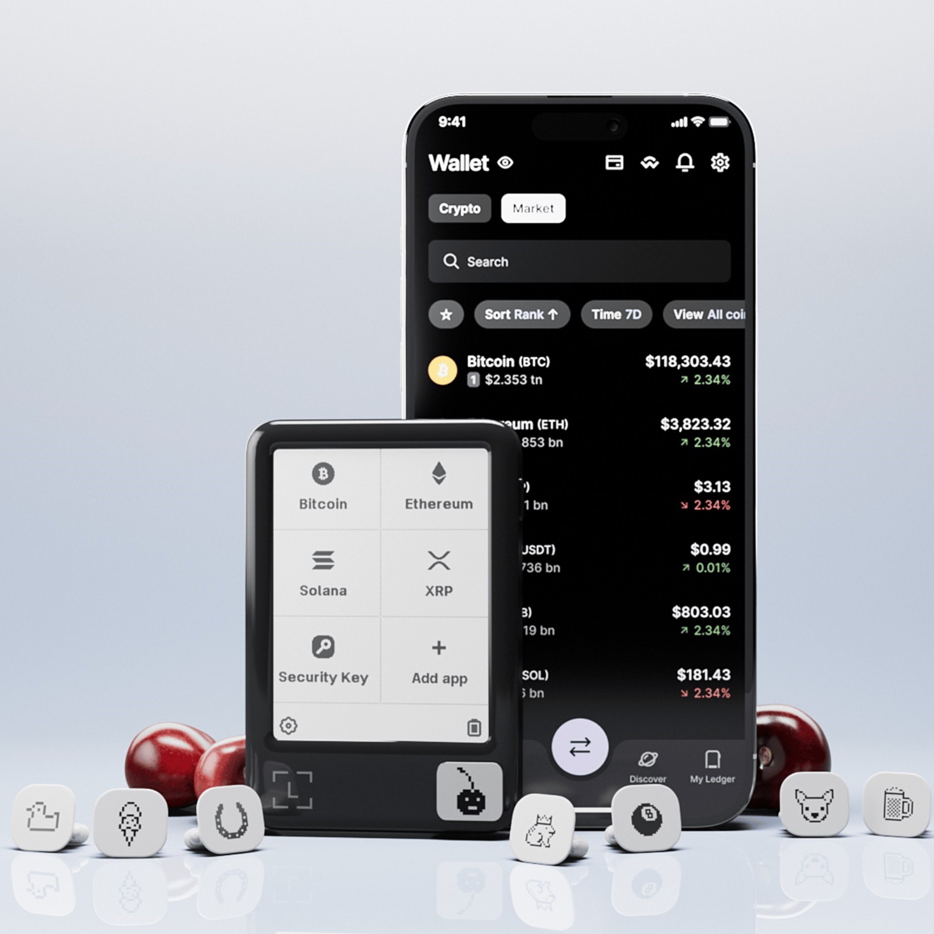 Bộ phụ kiện mua thêm sẽ gồm 3 huy hiệu với 9 thiết kế khác nhau, cho phép người dùng tùy chỉnh theo phong cách cá nhân. Chính sự xuất hiện của những chi tiết nhỏ này khiến Nano Gen5 trở nên gần gũi hơn, thay vì chỉ là phần cứng lưu trữ tiền điện tử thông thường.
