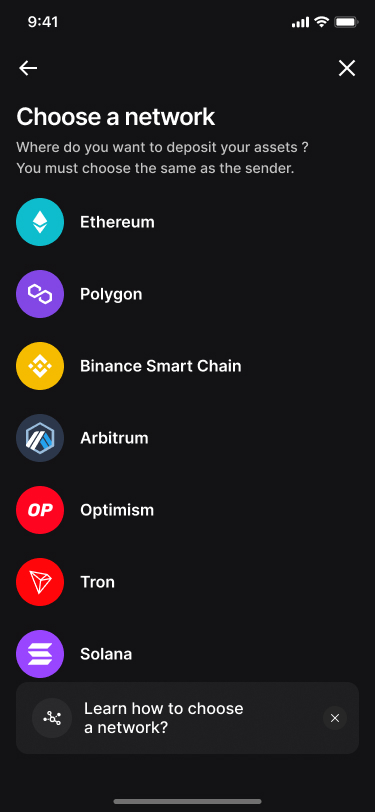 Khi rút tiền điện tử từ sàn giao dịch về tài khoản Ledger của bạn, bạn bắt buộc phải chọn đúng mạng lưới (network). Nếu chọn sai mạng, bạn có thể mất tài sản crypto.