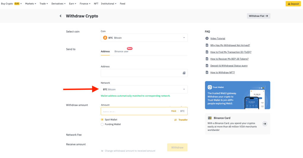 - Withdrawal network: Mạng mà bạn chọn khi rút crypto trên sàn.