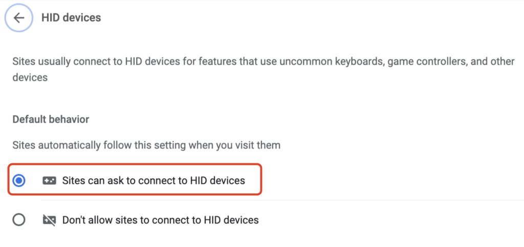 - Người dùng Chrome: Hãy đảm bảo rằng bạn đã cài đặt phiên bản mới nhất của MetaMask và Chrome. Các bản phát hành MetaMask gần đây sử dụng WebHID làm phương thức kết nối mặc định trên Chrome và không còn hỗ trợ tùy chọn “Preferred Connection Type” trong phiên bản cũ. Ngoài ra, hãy đảm bảo rằng bạn đã bật quyền truy cập thiết bị HID trong Chrome theo đường dẫn sau: chrome://settings/content/hidDevices.