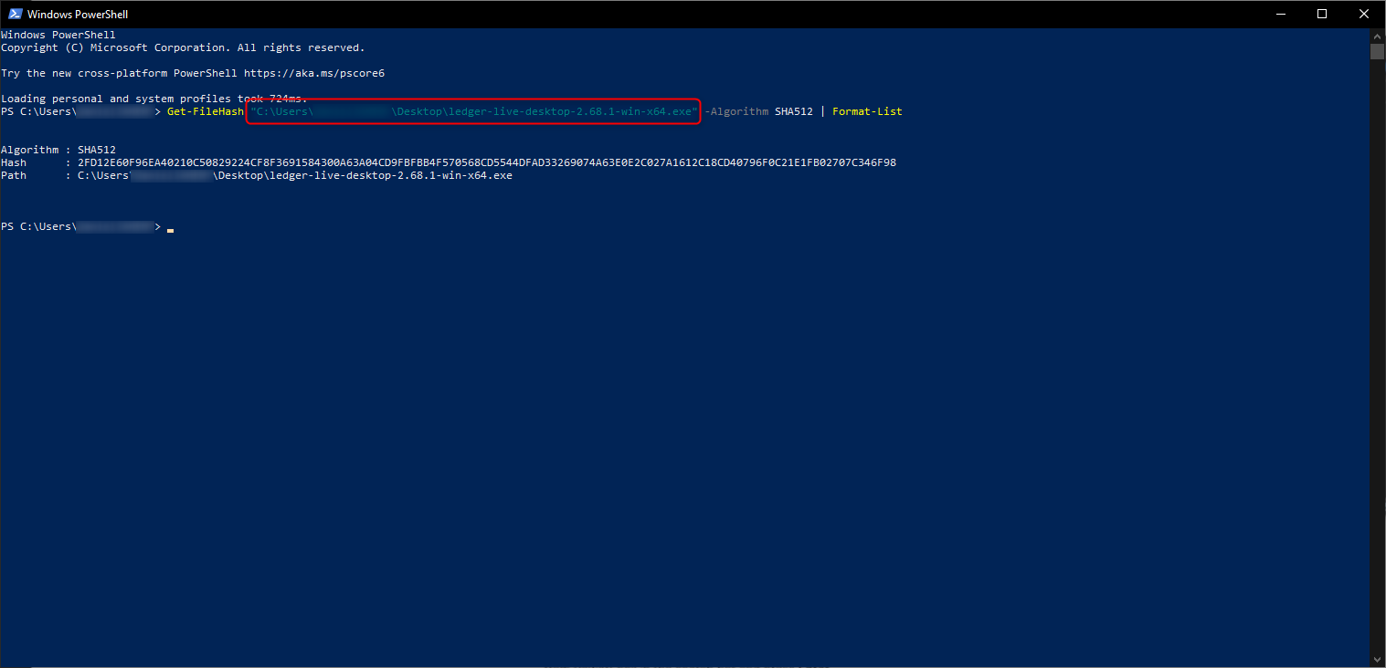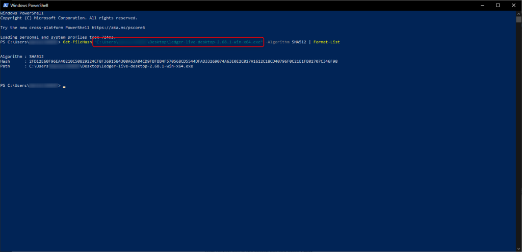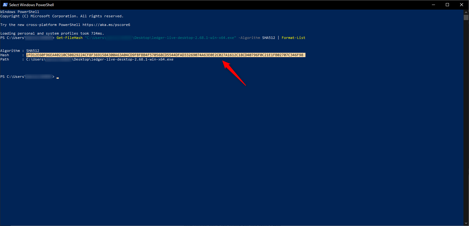 5. Trong PowerShell, nhập lệnh sau để lấy mã SHA-512 hash của file đã tải về:
