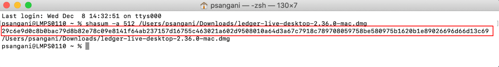 3. Để xác minh checksum của gói cài đặt Ledger Wallet, nhập lệnh sau trong Terminal (nhưng chưa nhấn Enter):