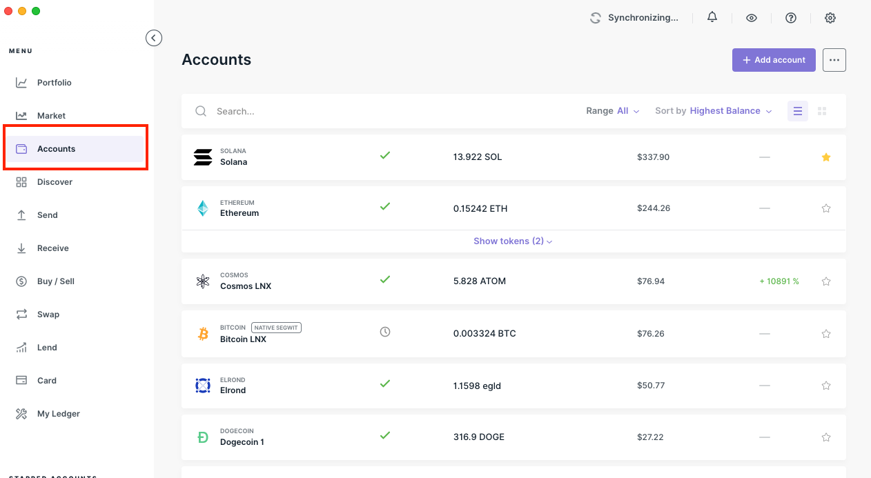 Bài viết này hướng dẫn bạn cách truy cập vào danh sách tài khoản (accounts) trong ứng dụng Ledger Wallet, trên cả phiên bản máy tính (desktop) và di động (mobile).
