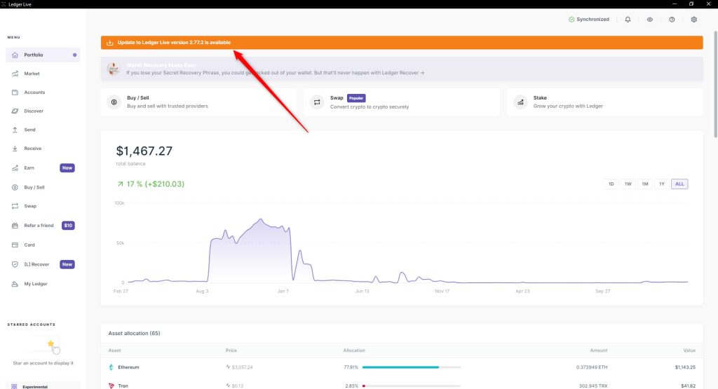 Trong một số trường hợp hiếm hoi, cần cập nhật thủ công Ledger Wallet.