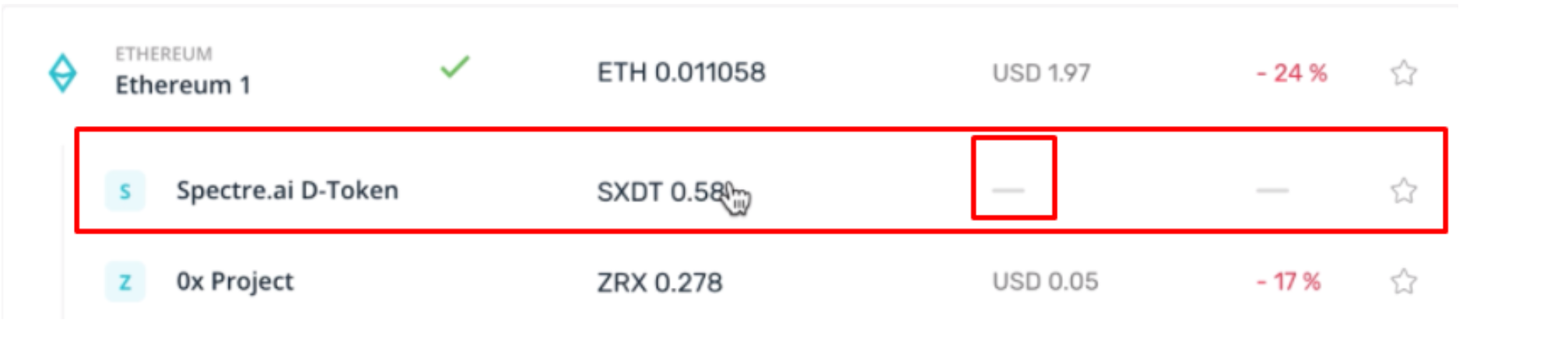 Đối với một số token như ERC20 / TRC10 / TRC20 / BEP20, Ledger Wallet có thể không hiển thị giá trị quy đổi sang tiền pháp định.