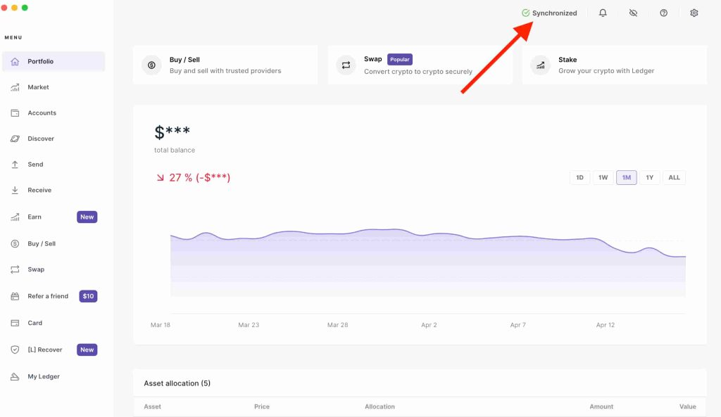 - Nhấn nút Synchronize trong Ledger Wallet để thử lại.