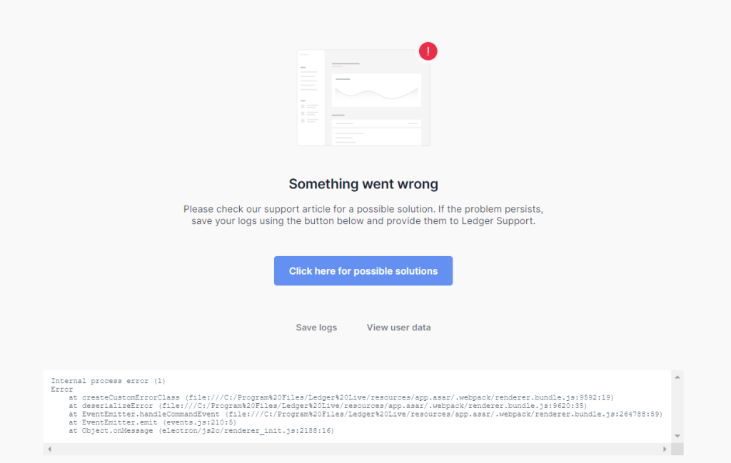 Nếu bạn thấy màn hình lỗi xuất hiện khi khởi động Ledger Wallet, không nhấn nút “Restart” (Khởi động lại).