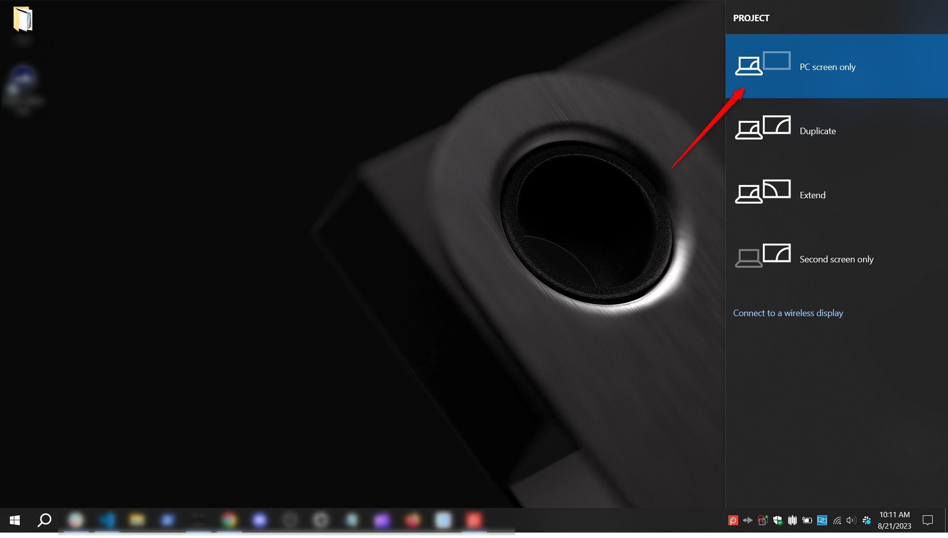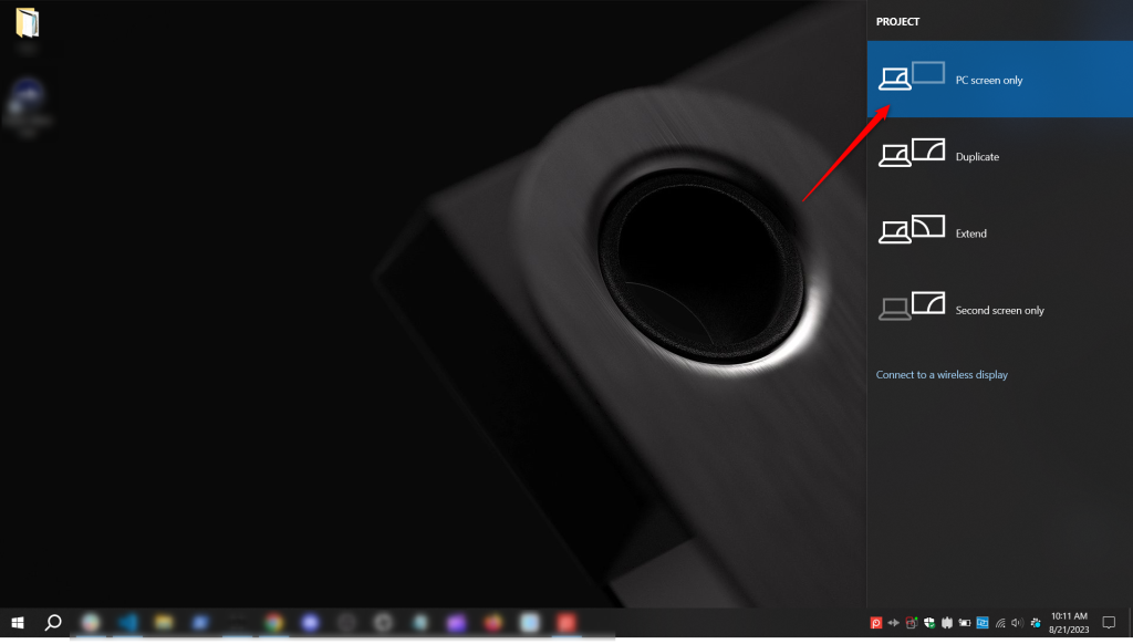 Sự cố này thường xảy ra sau khi bạn ngắt kết nối màn hình phụ hoặc màn hình mở rộng (secondary/extended monitor). Khi gặp những trường hợp như vậy, bạn hãy thử giữ phím Windows và nhấn “P”. Chọn tùy chọn “PC screen only” (Chỉ hiển thị trên màn hình máy tính).