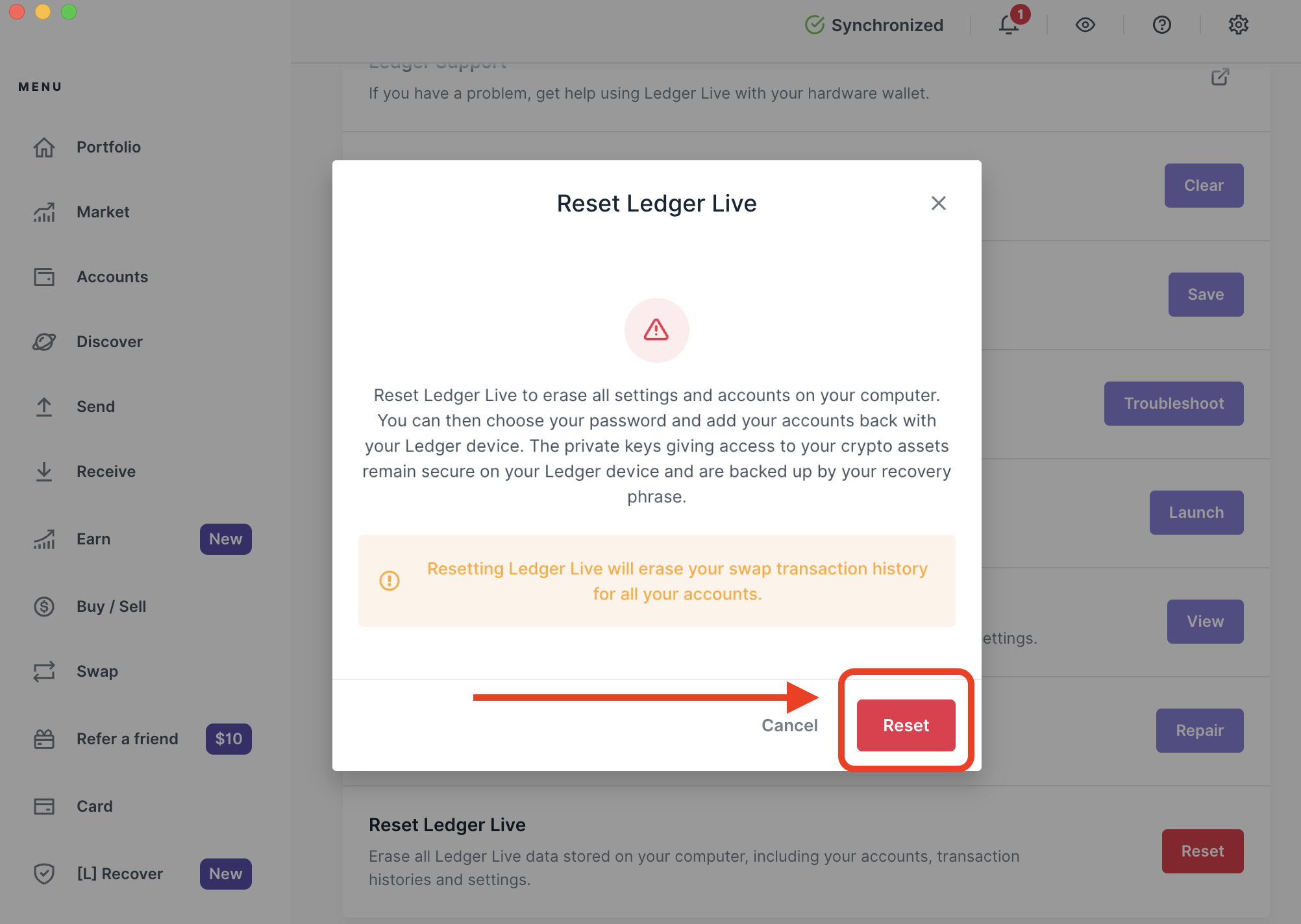 Cách đặt lại (Reset) ứng dụng Ledger Wallet (trước đây là Ledger Live)