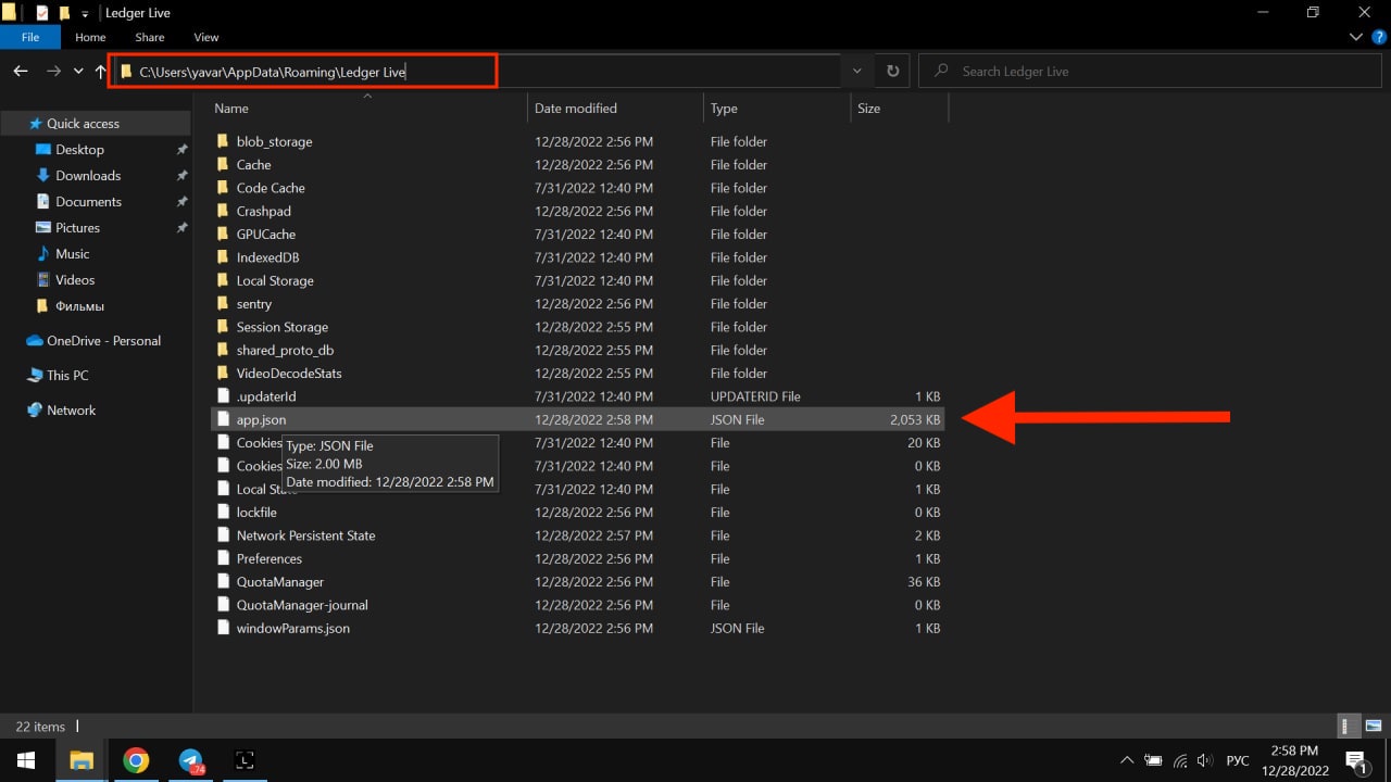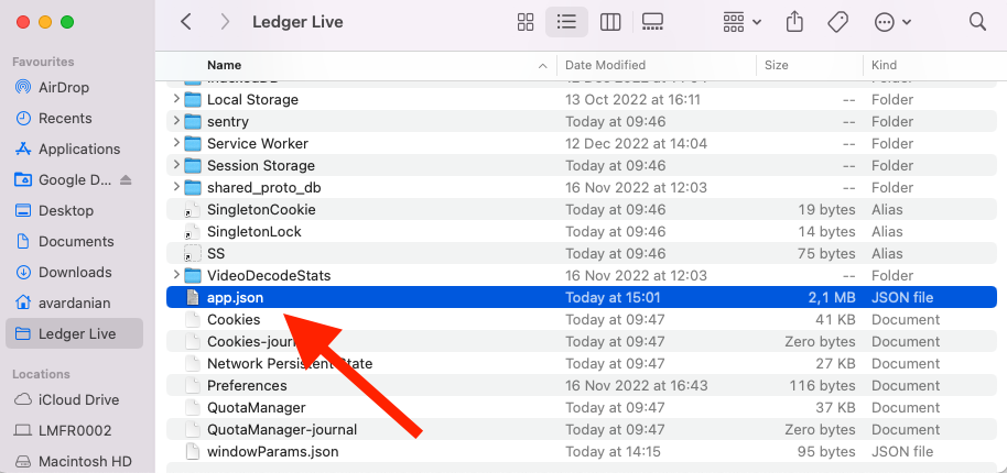Tương tự, nếu bạn không thể mở thư mục app.json qua Ledger Wallet, có thể truy cập thủ công như sau: