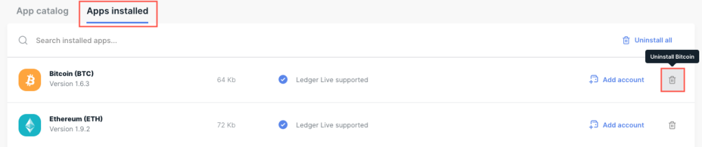 Nếu bạn đang có bất kỳ ứng dụng nào trong danh sách trên được cài đặt trên thiết bị Ledger nhưng không còn nhu cầu sử dụng, hãy làm theo các bước sau để gỡ bỏ:
