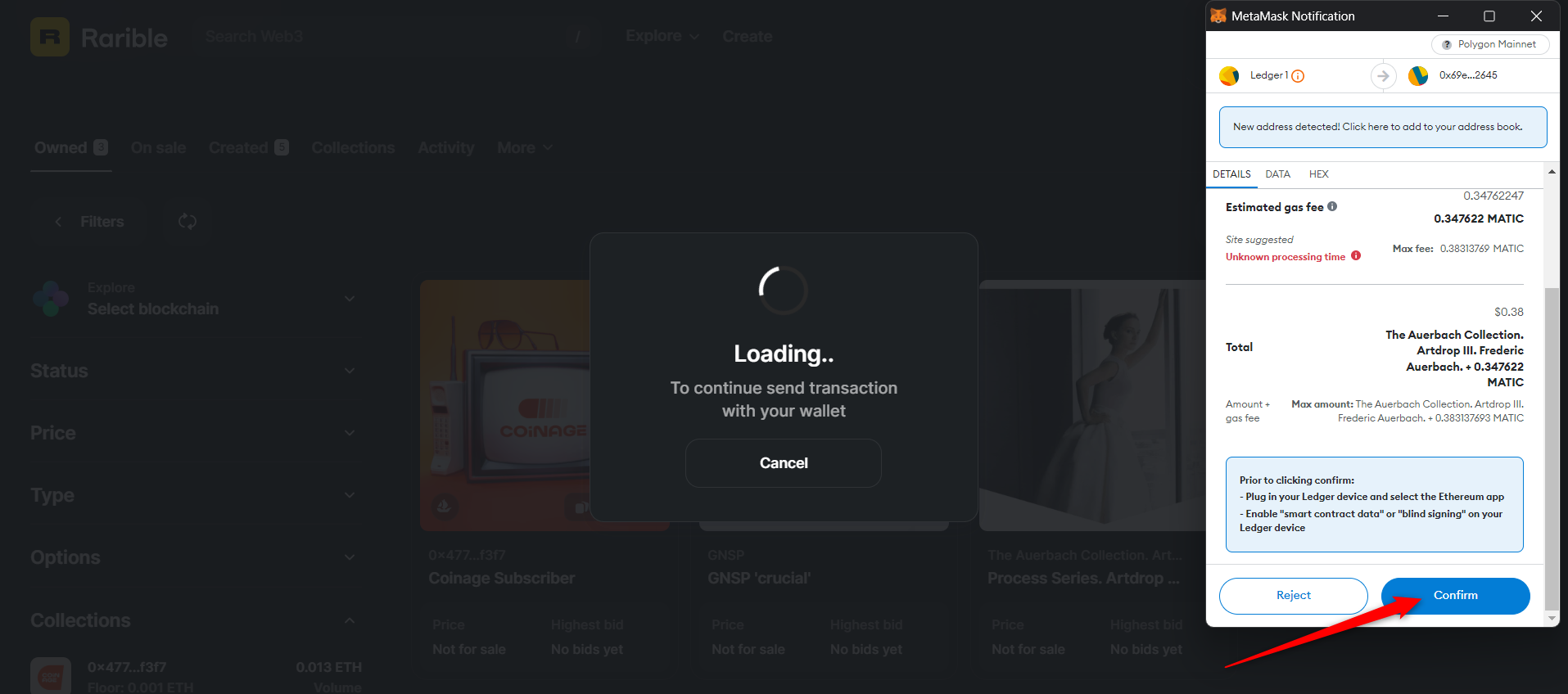 Khi giao dịch được xác nhận trên blockchain, NFT sẽ xuất hiện trong ví đích.