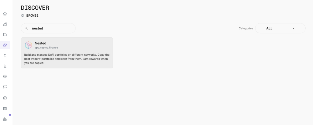 Bạn có thể truy cập Nested thông qua mục Discover trong Ledger Wallet. Lưu ý: mọi giao dịch đều phải được phê duyệt trên thiết bị Ledger của bạn.