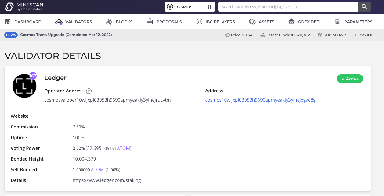 Từ tháng 01/2022, Ledger chính thức triển khai validator node riêng trên nhiều blockchain, bắt đầu từ Cosmos (ATOM) và sẽ mở rộng thêm.