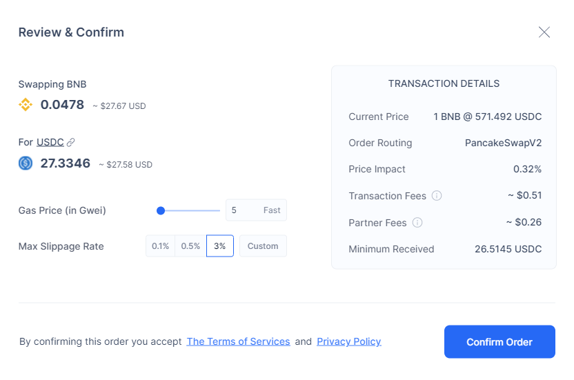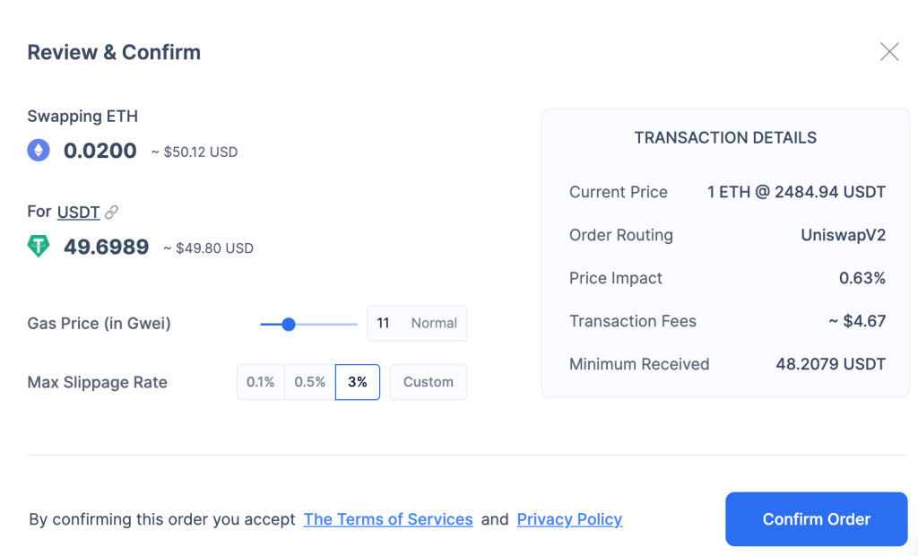 Kiểm tra chi tiết giao dịch trong cửa sổ hiển thị. Nhấp vào nút Confirm Order để tiếp tục.