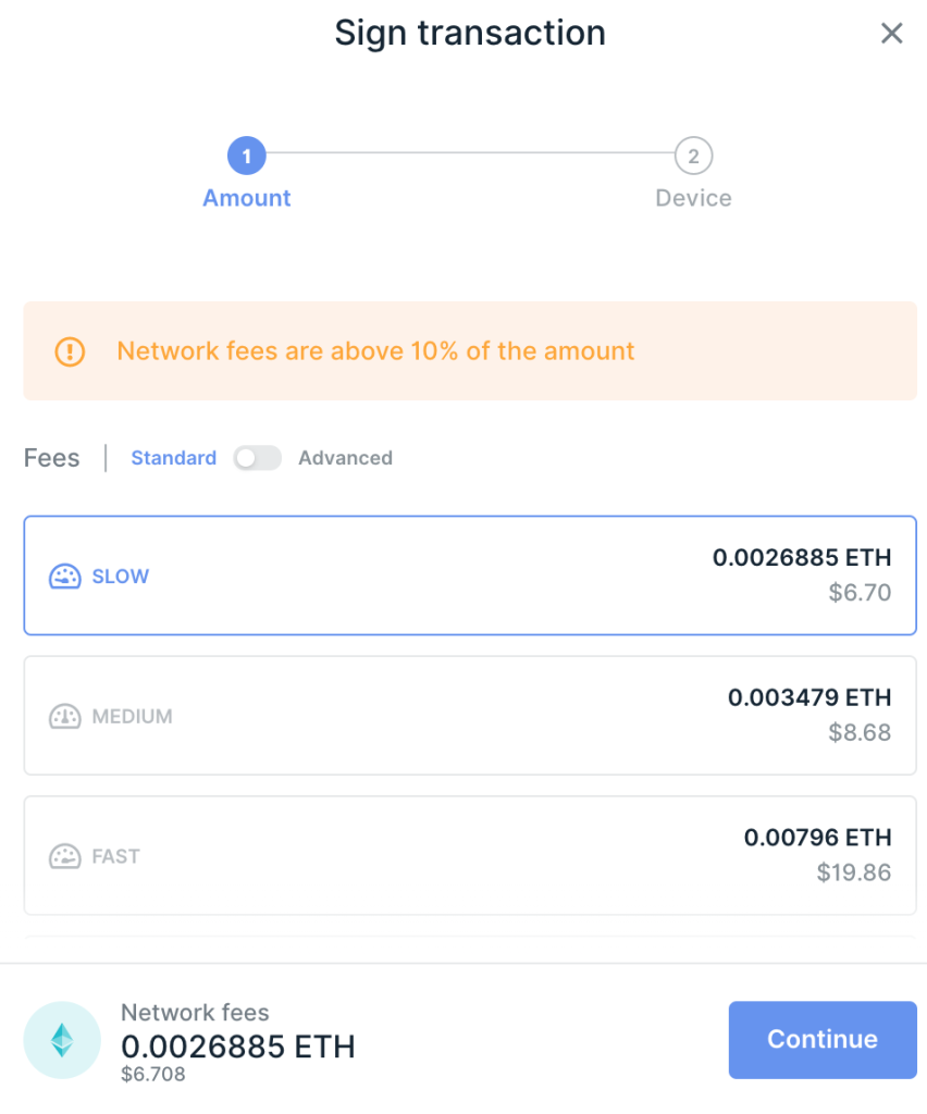 4. Chọn phí mạng (network fees).