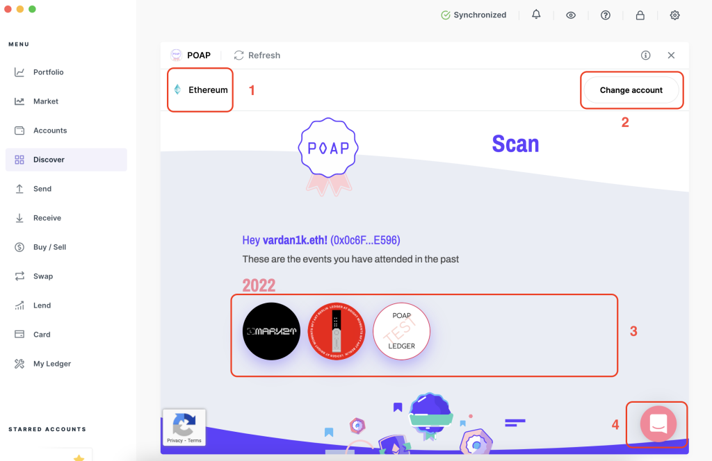 POAP nằm trong mục Discover của Ledger Wallet. Đây là ứng dụng được Ledger phê duyệt, có thể ngay lập tức hiển thị các POAP mà bạn đang sở hữu trong tài khoản của mình.