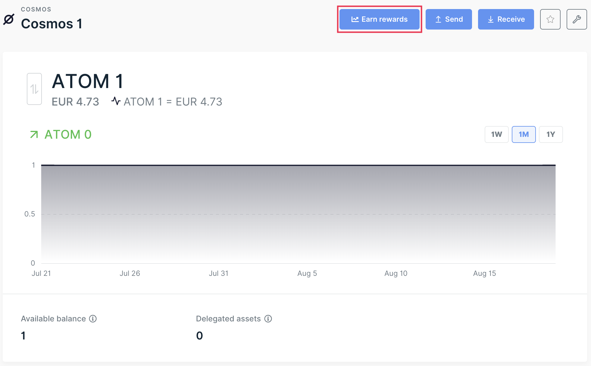 - Nhấn Earn rewards trong trang tài khoản Cosmos của bạn.