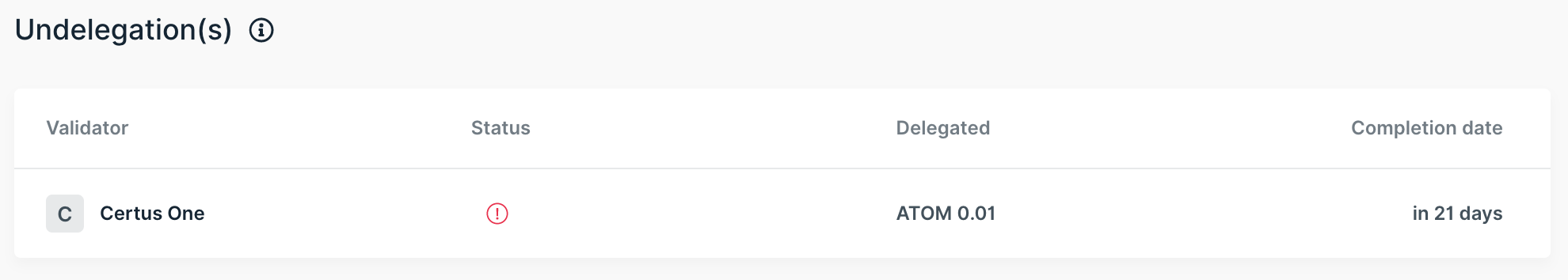 - Bộ đếm thời gian 21 ngày sẽ hiển thị trong danh sách Undelegation(s).