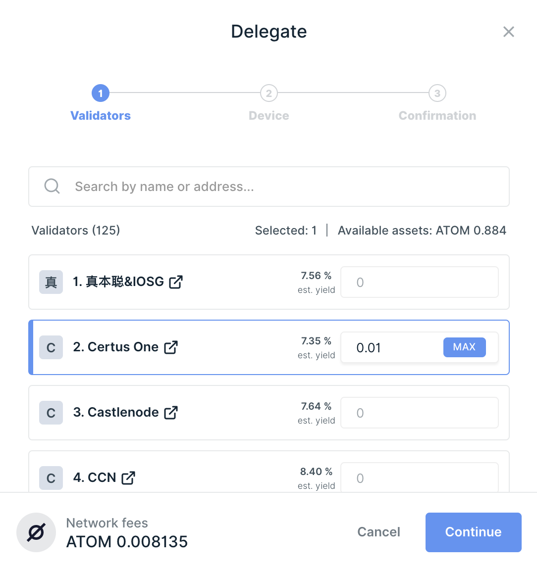 - Bạn có thể chọn tối đa 5 validator trong một lần ủy quyền.