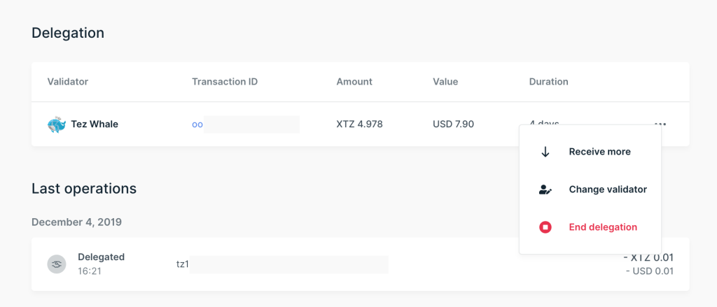 - Chọn Change validator hoặc End delegation. Trang Summary (Tóm tắt) sẽ xuất hiện, tại đây bạn có thể thay đổi trình xác thực hoặc kết thúc việc ủy quyền (delegation).