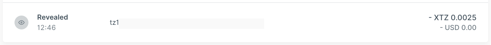 Hoạt động reveal sẽ công khai địa chỉ công khai (public address) của một tài khoản Tezos mới lên mạng lưới Tezos. Đây là bước bắt buộc trước khi có thể thực hiện bất kỳ giao dịch nào khác và tiêu tốn 0.0025 XTZ. Ledger Wallet sẽ tự động tạo hoạt động reveal khi bạn lần đầu tiên gửi hoặc ủy quyền (delegate) từ một tài khoản.