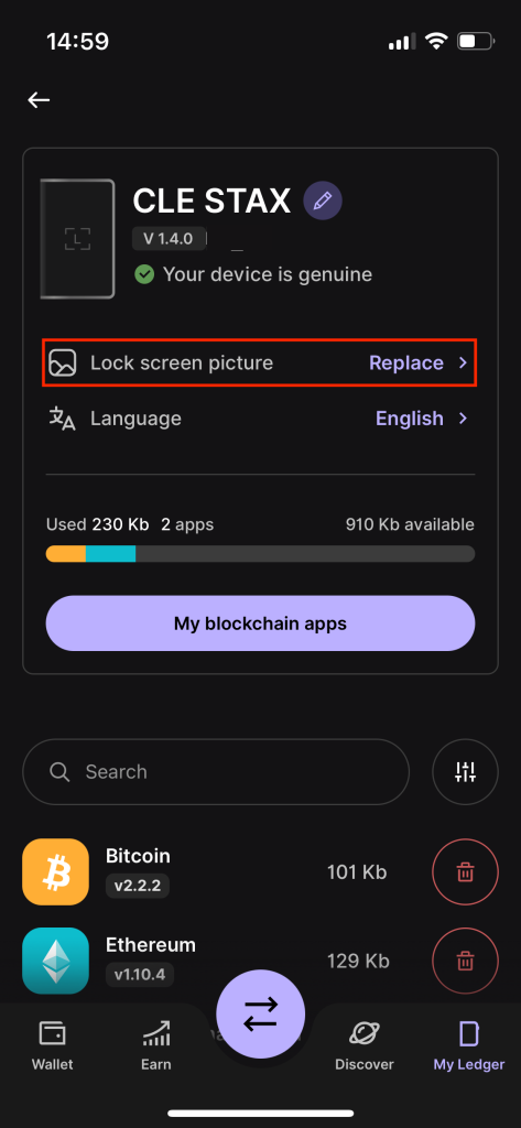 Ảnh màn hình khóa tùy chỉnh sẽ hiển thị ngay cả khi thiết bị Ledger của bạn đang tắt.