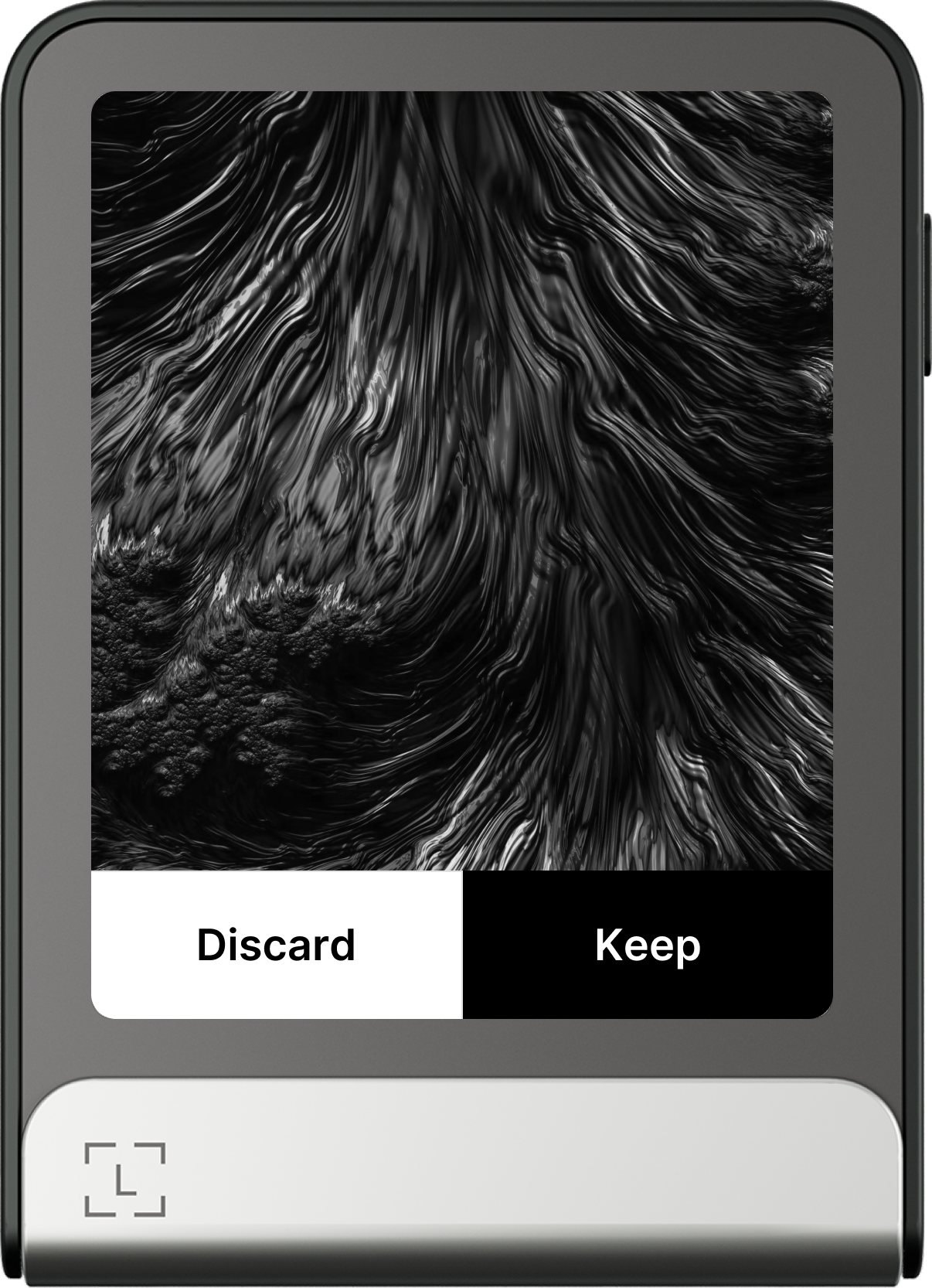 Ledger Stax Ledger Flex - Chạm Keep để xác nhận. Ảnh màn hình khóa của bạn đã được thiết lập.