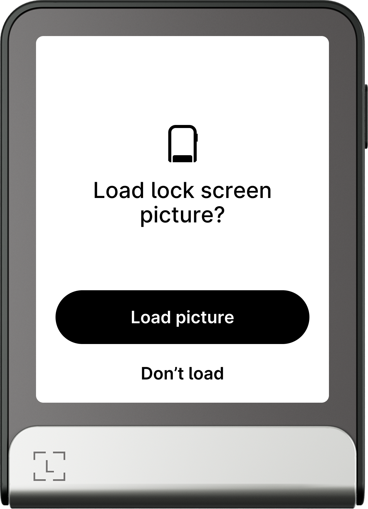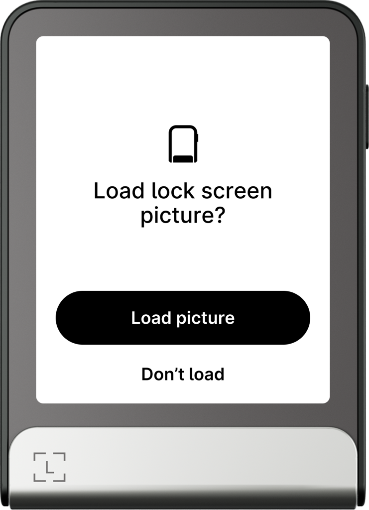 - Trên thiết bị Ledger, chạm Load picture. Thiết bị của bạn sẽ hiển thị tiến trình tải ảnh.