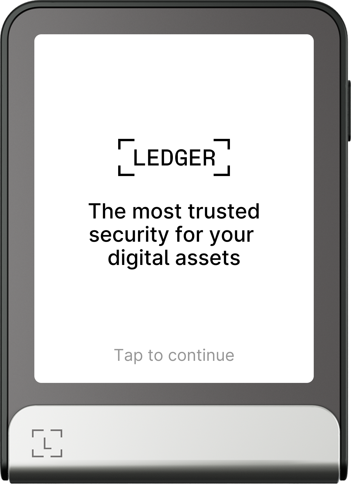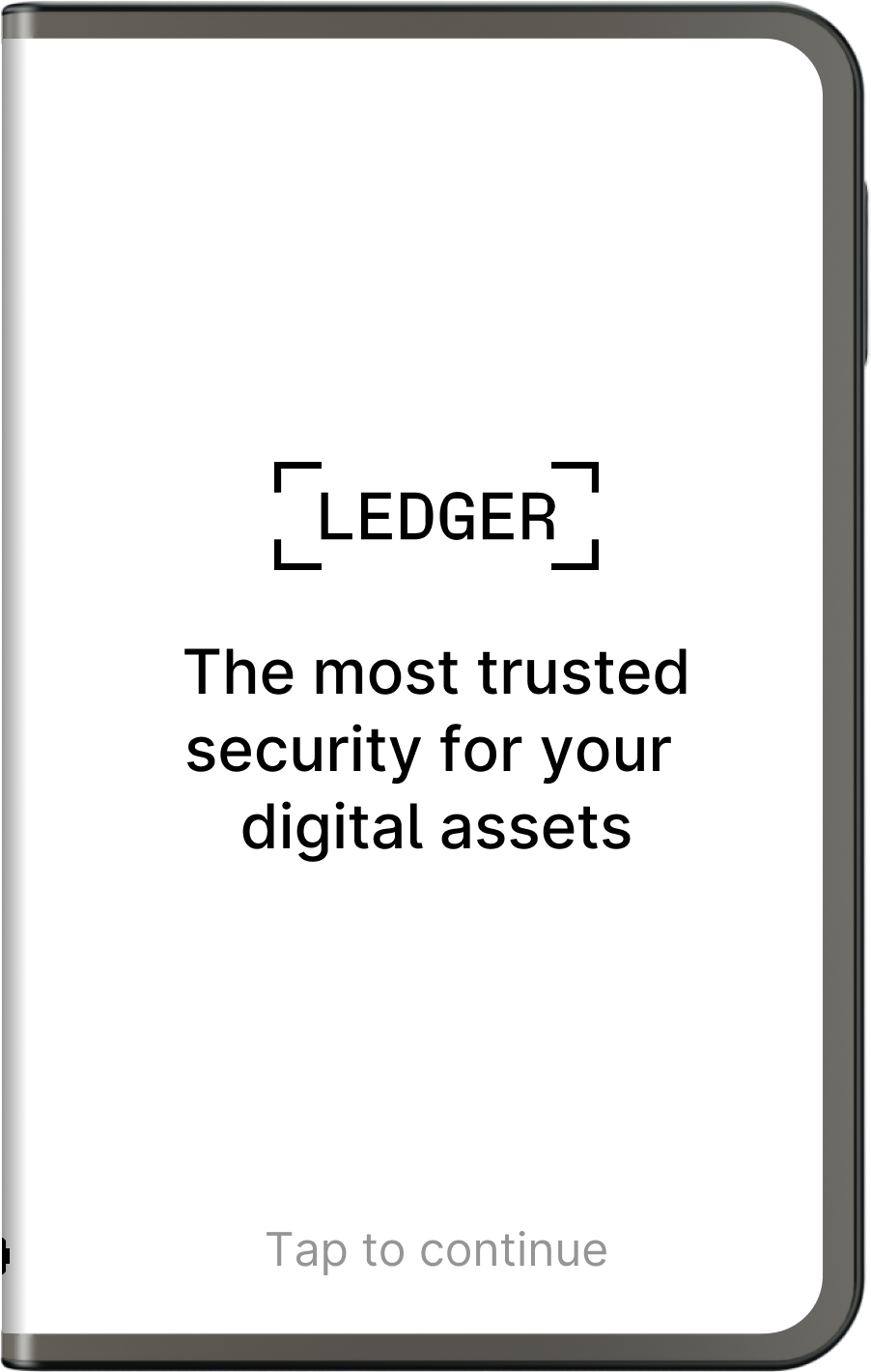 - Màn hình sẽ hiển thị: “Ledger – Giải pháp bảo mật đáng tin cậy nhất cho tài sản số của bạn” (Ledger. The most trusted security for your digital assets).