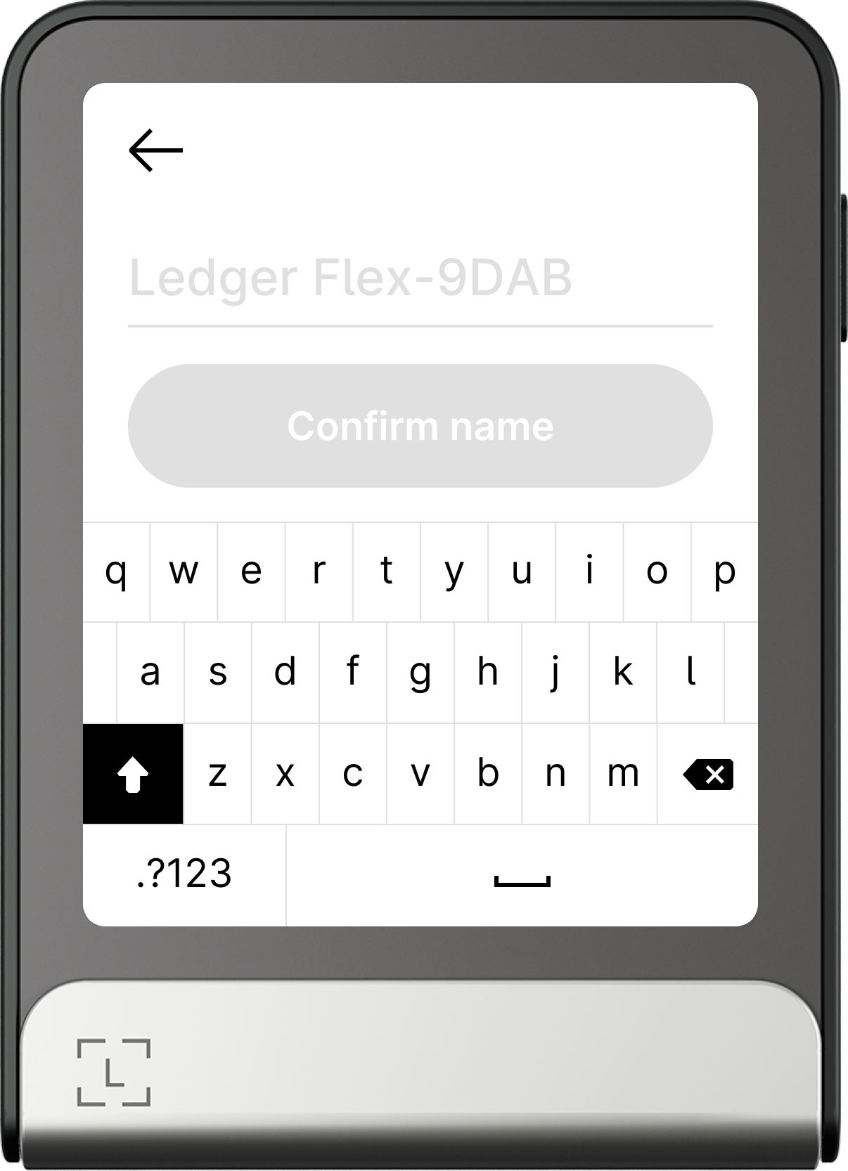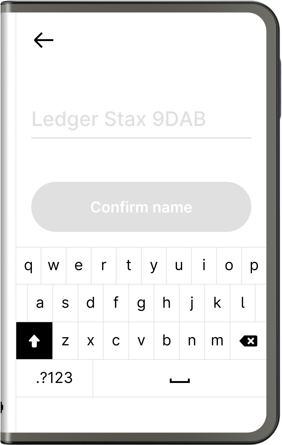 Ledger Stax Ledger Flex - Chạm Confirm name → Tiếp tục thiết lập.