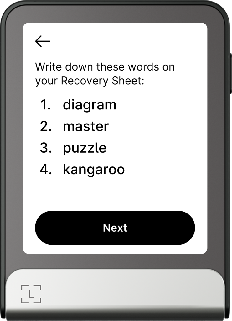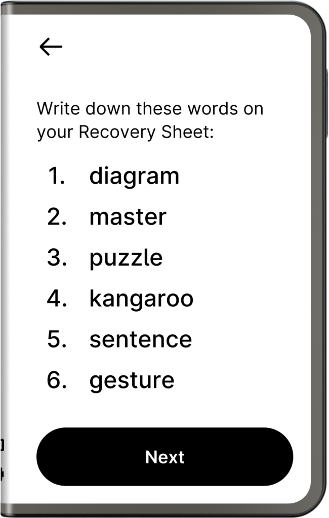 - Chạm “Next” → Ghi nhóm từ tiếp theo → Lặp lại cho đến khi đủ 24 từ.