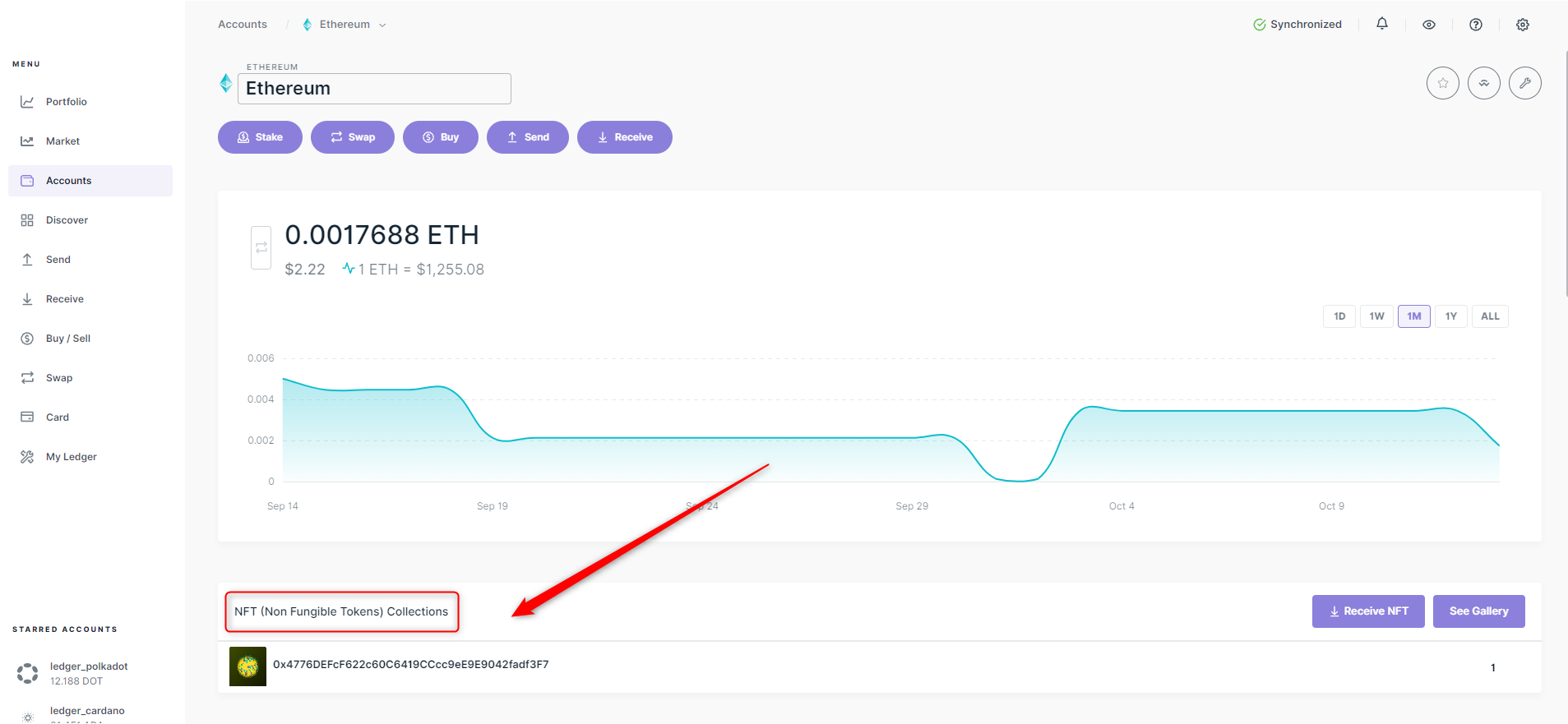 Khi giao dịch được xác nhận trên mạng Ethereum, NFT sẽ xuất hiện trong mục NFT Collections của tài khoản Ethereum trong Ledger Wallet.