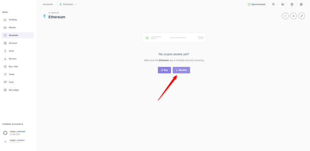 4. Mở tài khoản Ethereum trong Ledger Wallet rồi chọn Receive.