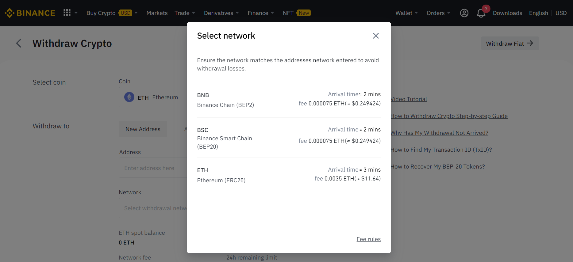 Khi rút tài sản tiền mã hóa từ Binance, bạn sẽ được cung cấp nhiều tùy chọn mạng khác nhau.