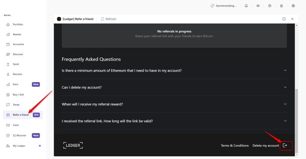 Nếu bạn không thấy phần thưởng trong mục Refer a Friend của Ledger Wallet, nguyên nhân có thể là bạn đang đăng nhập bằng sai tài khoản. Lưu ý, mục Refer a Friend bắt buộc đăng nhập bằng tài khoản Ethereum (ETH), phần thưởng được liên kết trực tiếp với địa chỉ ETH này. Nếu đăng nhập bằng tài khoản khác, phần thưởng sẽ không hiển thị.