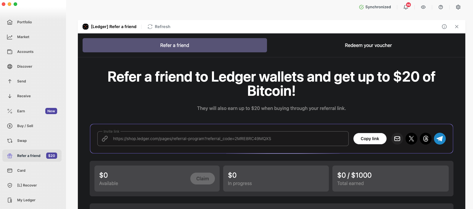 Bài viết này hướng dẫn cách nhập mã đổi thưởng (redemption code) và claim phần thưởng crypto. Quy trình này áp dụng cho các chương trình ưu đãi Black Friday, chương trình Bitcoin Halving, voucher Ledger Flex phiên bản Solana, ưu đãi Safe Journey và chương trình Refer a Friend.