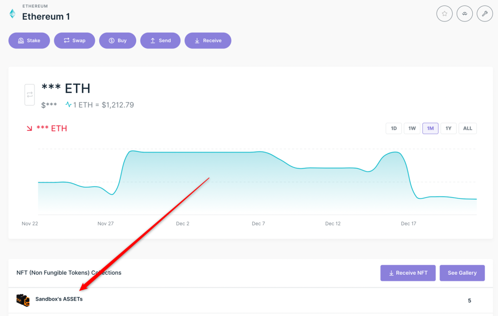 Sau khi giao dịch được xác nhận trên mạng Ethereum, NFT Ledgerverse của bạn sẽ hiển thị trong tài khoản Ethereum (ETH) trên Ledger Wallet.