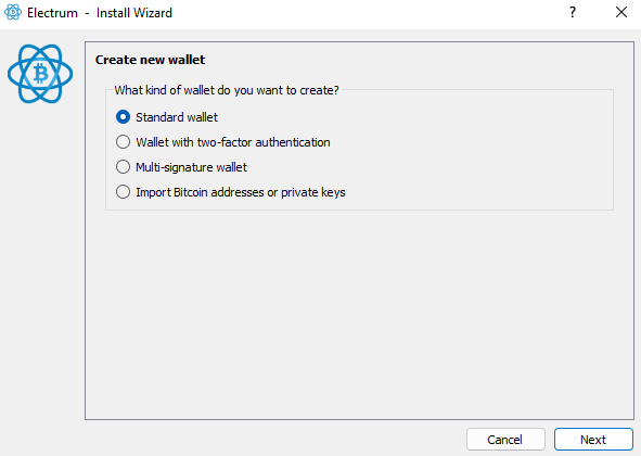 3. Chọn Next. Giữ nguyên trường “Wallet” ở phần trên.