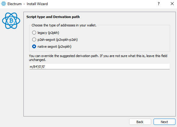 Nếu tài khoản Bitcoin được tạo qua Ledger Wallet, hãy chọn native segwit (p2wpkh).