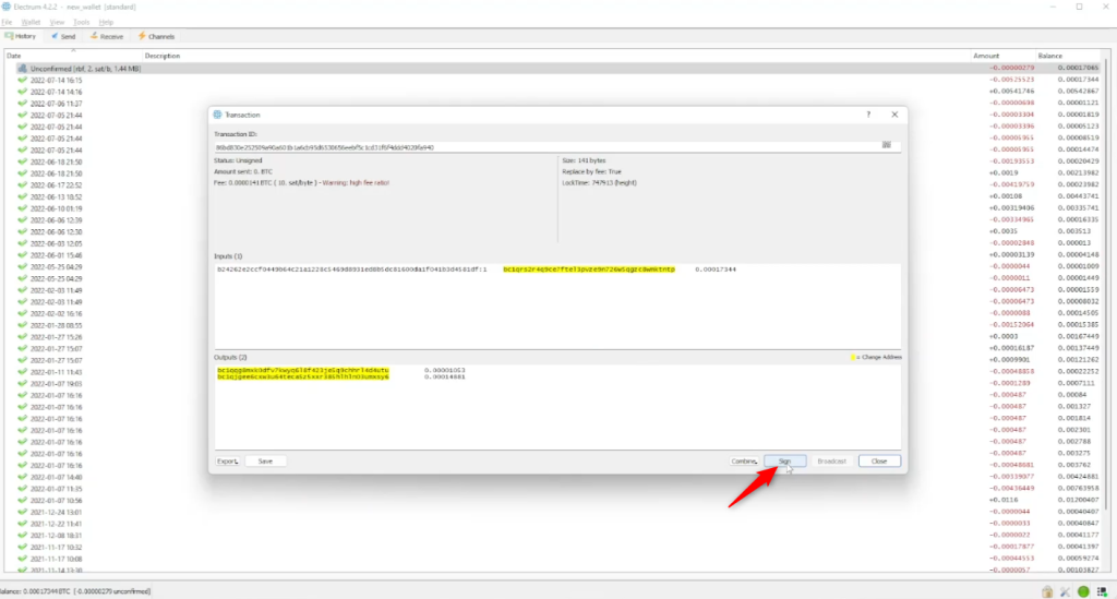 - Electrum sẽ hiển thị lịch sử giao dịch của tài khoản bạn.