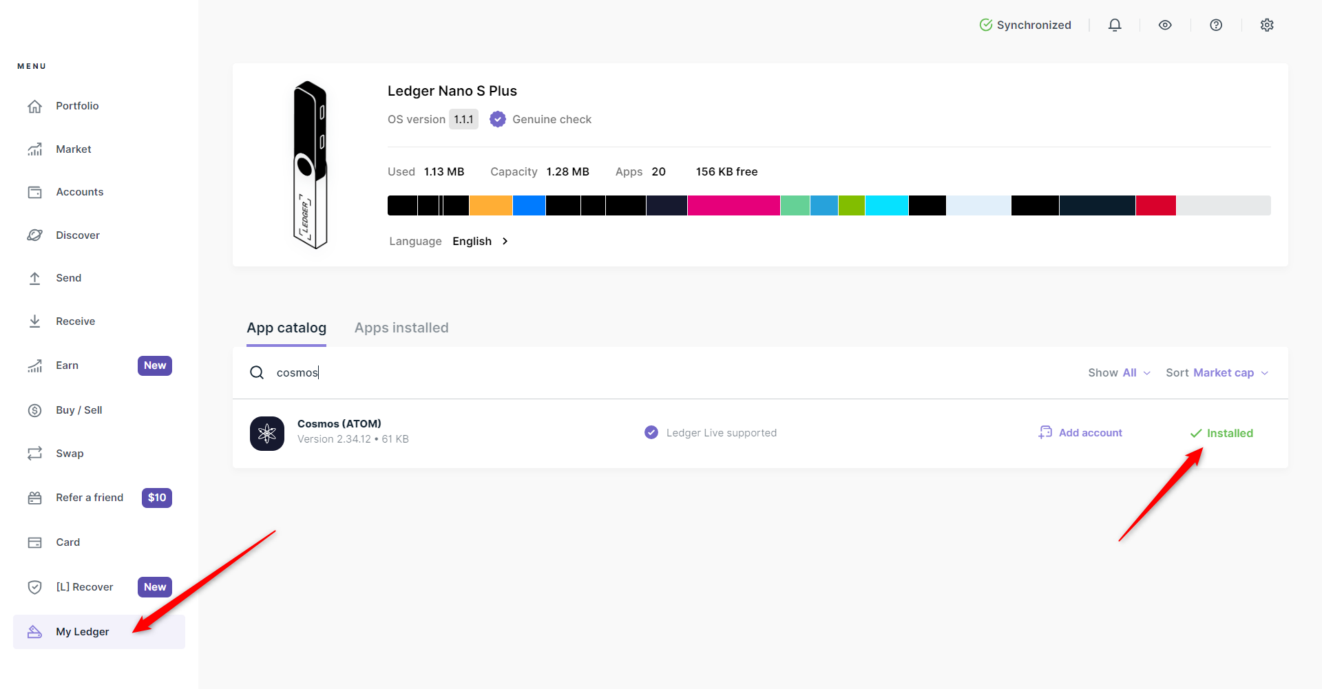 Cài đặt ứng dụng Cosmos trên thiết bị Ledger