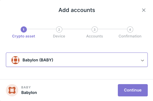 Quản lý Babylon (BABY) trong Ledger Wallet