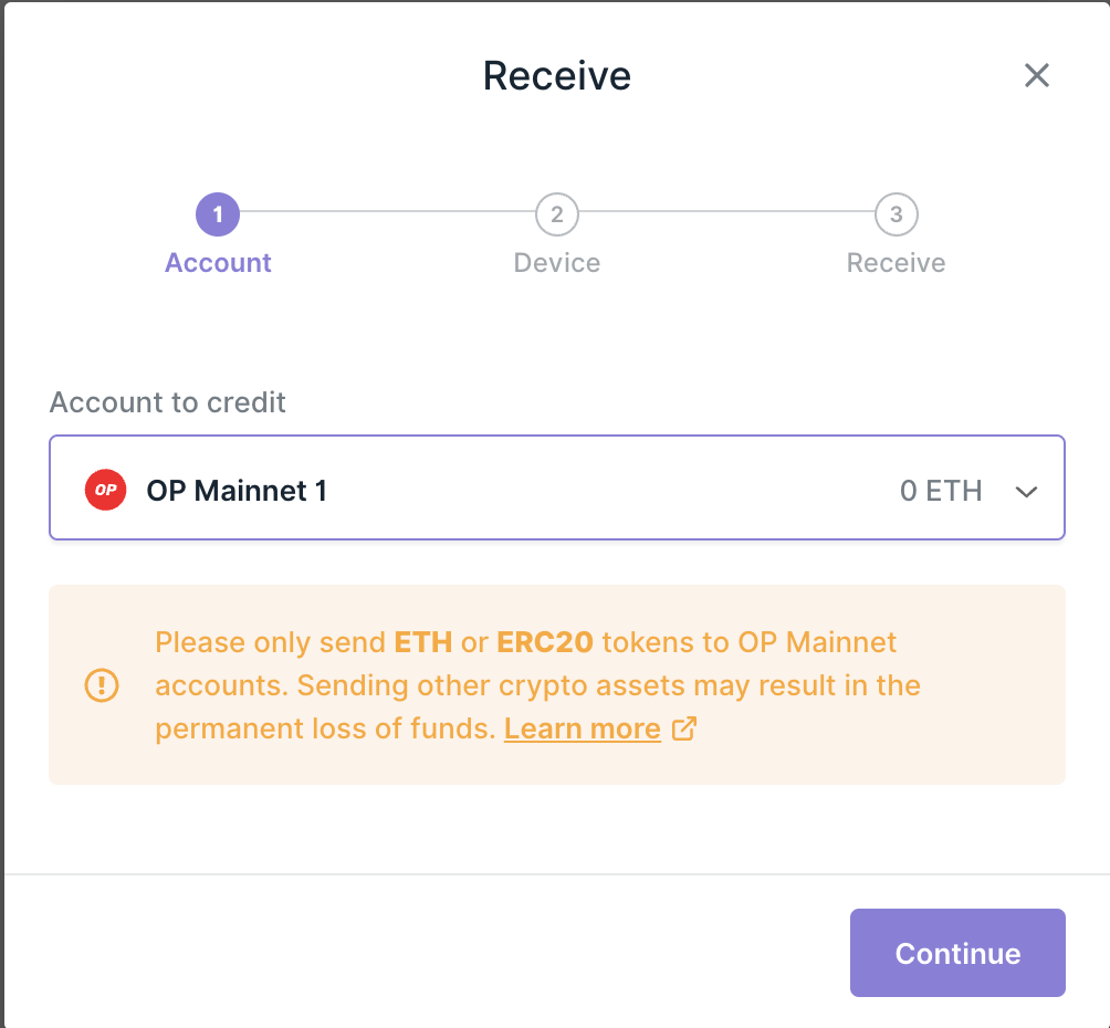 1. Mở tài khoản Optimism (OP Mainnet) trong Ledger Wallet.