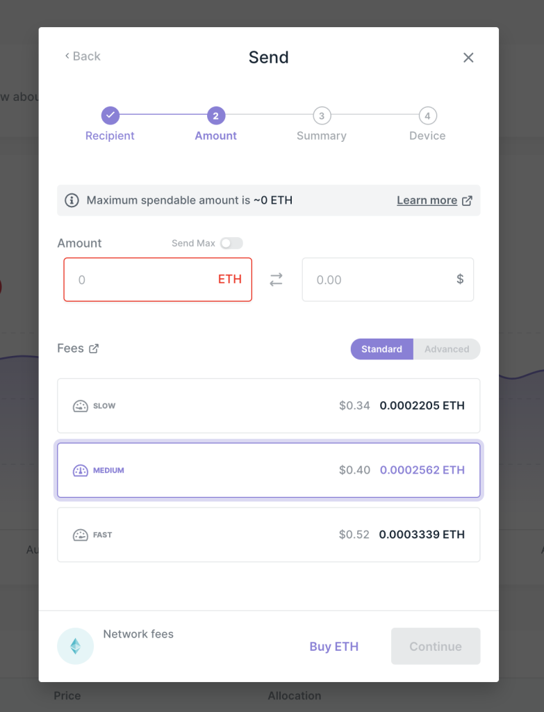 Với việc tích hợp mô hình EIP-1559, giao diện Ledger Wallet được cập nhật cho tất cả giao dịch trên nền tảng Ethereum.