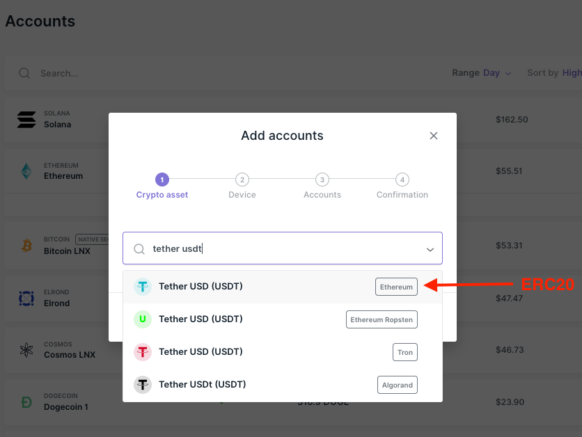 - Nếu bạn thấy token của mình có nhãn “Ethereum”, điều đó có nghĩa là token ERC20 của bạn được hỗ trợ trong Ledger Wallet.