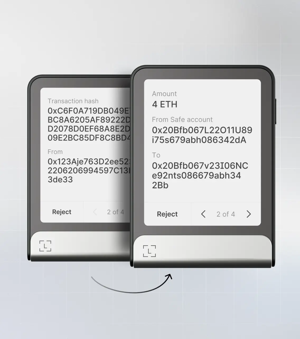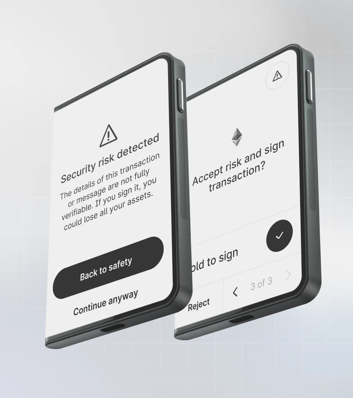 Công nghệ của Ledger giúp hiển thị các chi tiết giao dịch phức tạp của hợp đồng thông minh thành ngôn ngữ dễ hiểu ngay trên màn hình thiết bị Ledger. Bạn có thể kiểm tra chính xác địa chỉ nhận và số lượng tài sản trước khi ký, giúp chống lại các cuộc tấn công lừa đảo (phishing) hoặc mã độc.